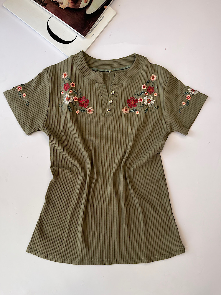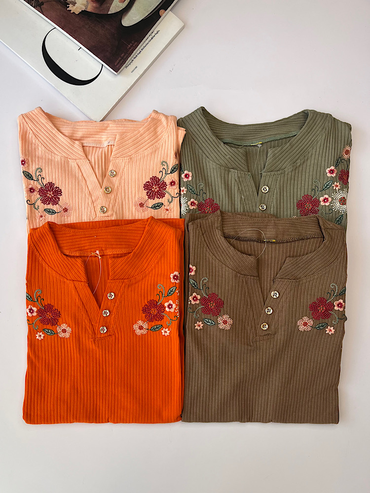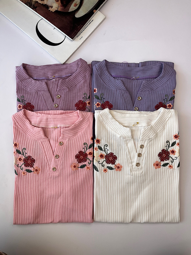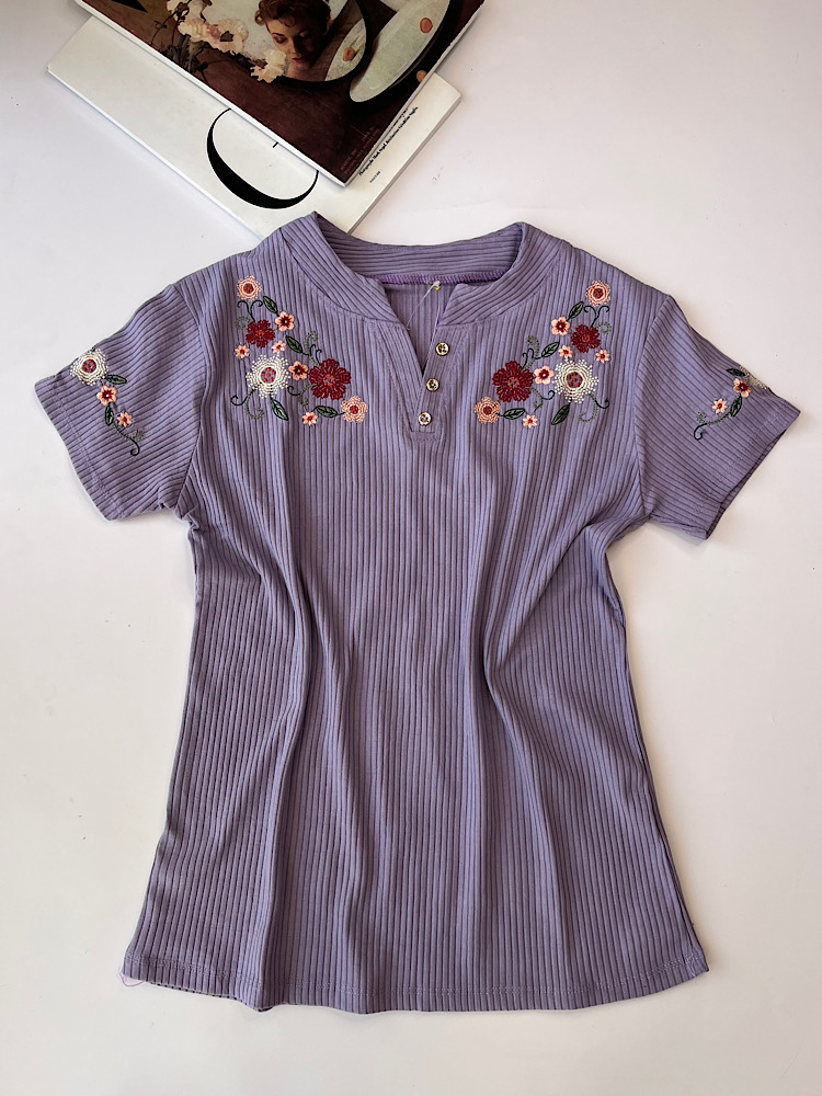 تیشرت گلدوزی دکمه دار